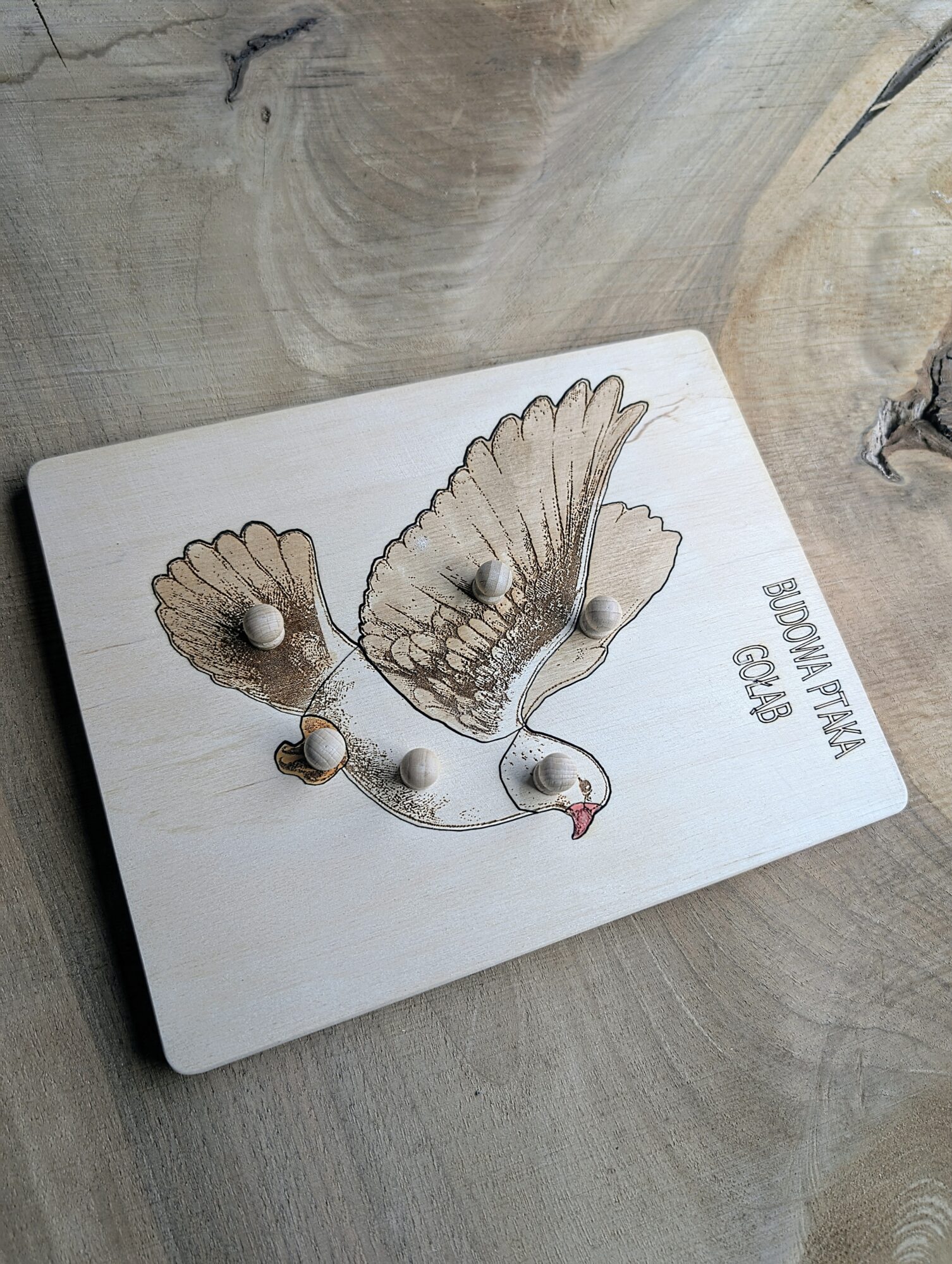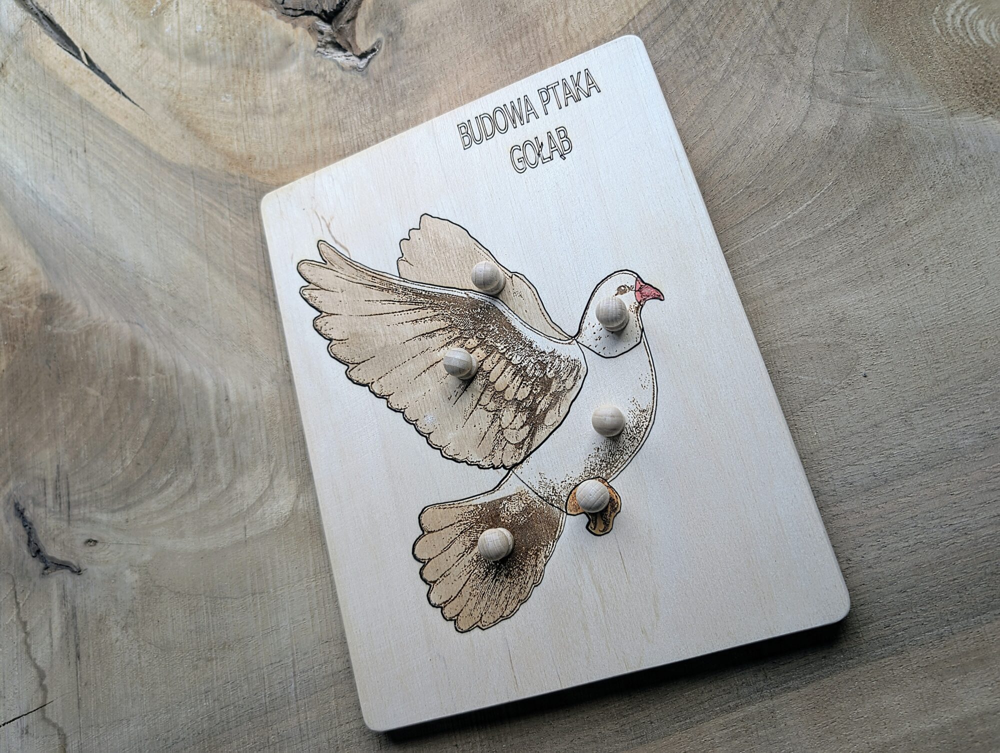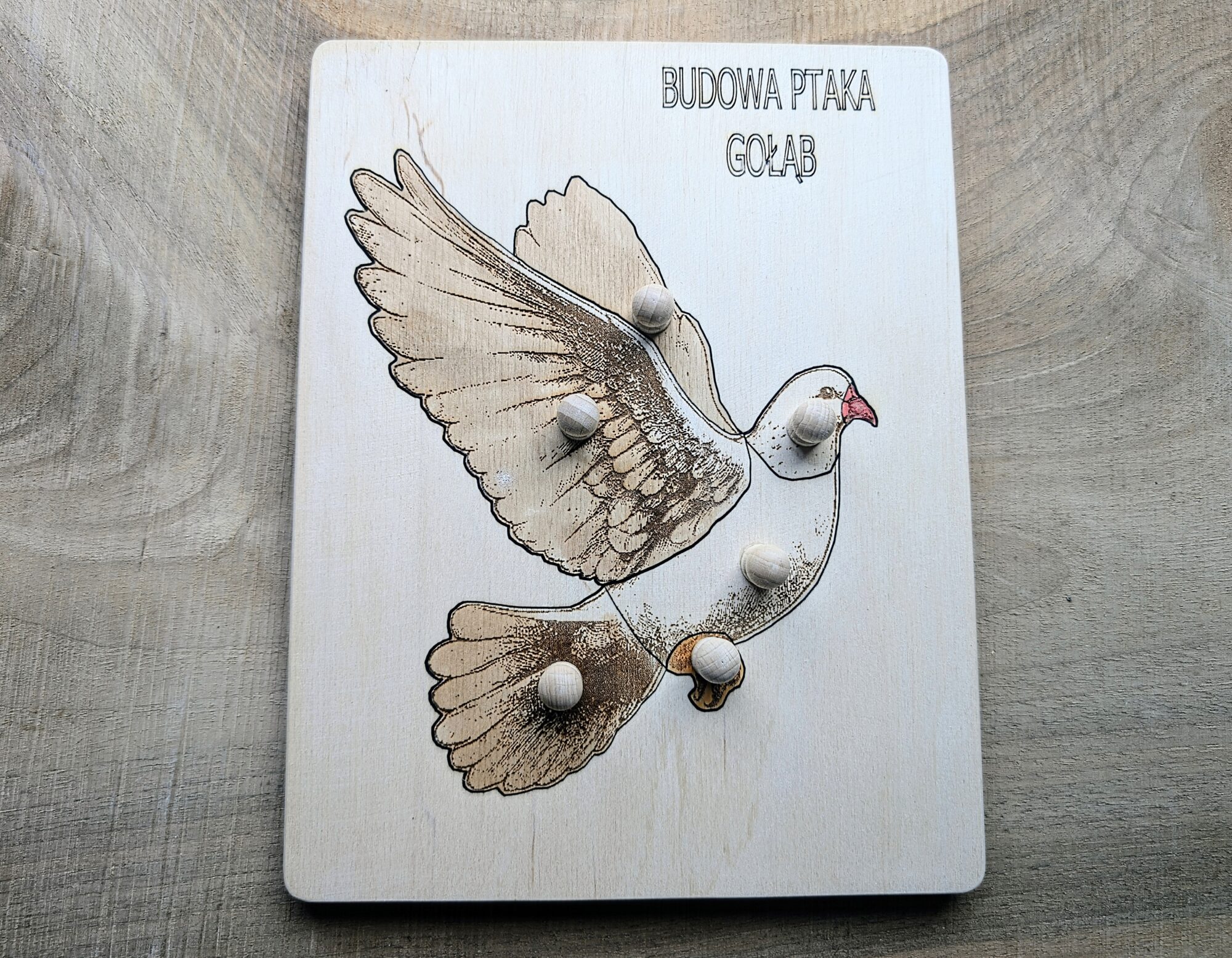 Układanka przez zabawę uczy budowy ptaka i  rozwija dziecko przez poznawanie otaczającego świata.